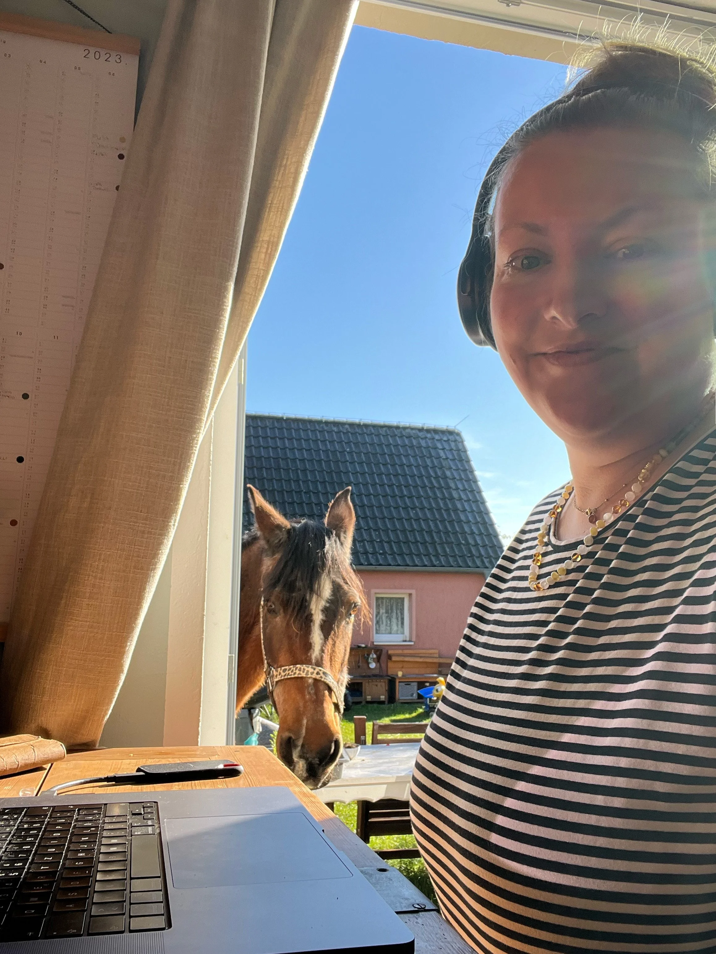 Ich lebe mit meinem Mann und unseren zwei Kindern auf unserem kleinen Hof in der Uckermark. Unsere Nachbarn sind Schafe, Pferde und Hühner, und meistens auch die einzigen, die an unserem Fenster klopfen.