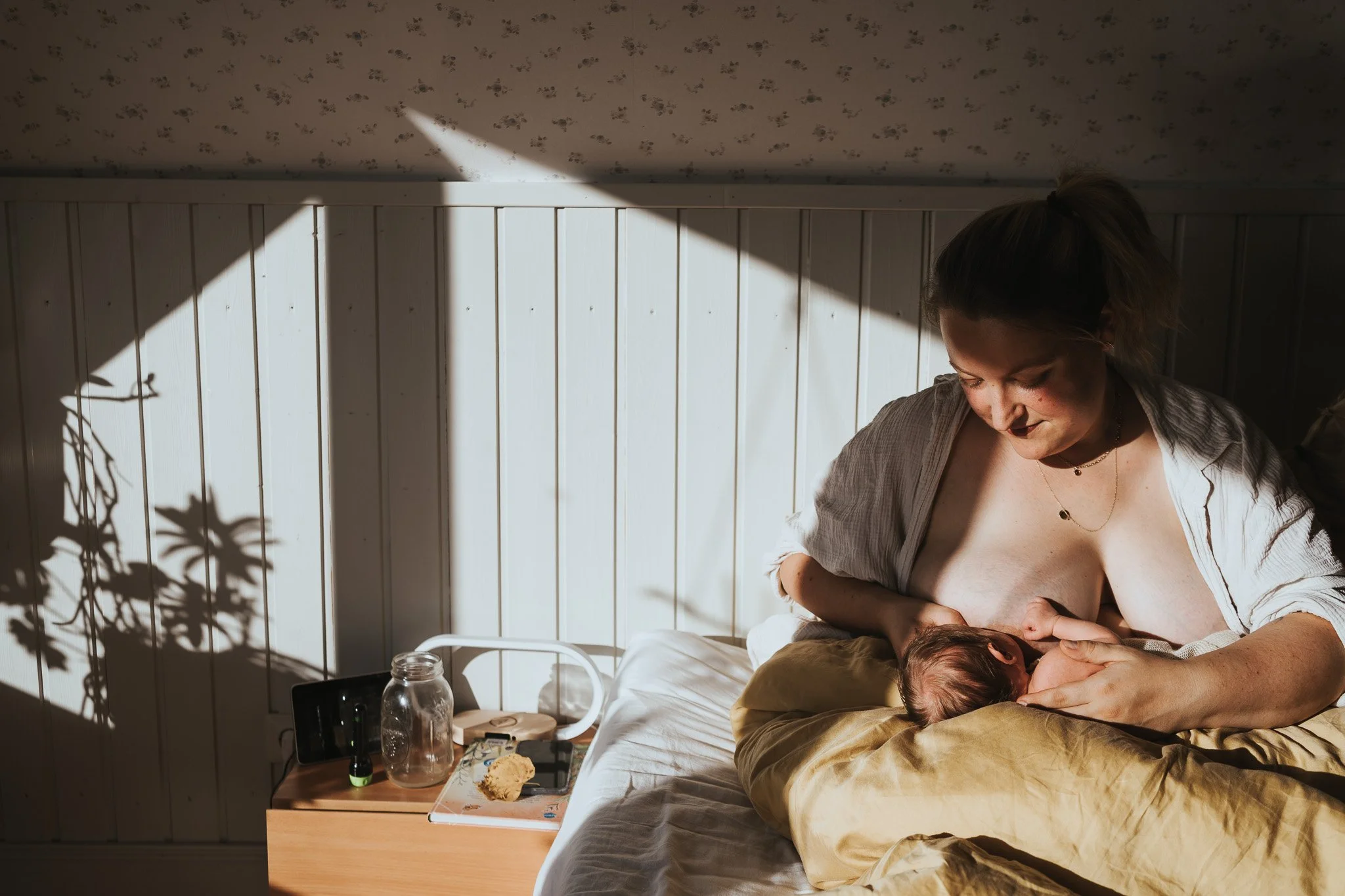 Und dann gibt es diese Momente. Ein Vater öffnet die Tür in Unterhose. Die Mama liegt im Bett, Netzschlüpper, Baby auf der Haut, Milchpumpe in Betrieb. Und sie lassen mich rein. In diese echte, ungefilterte, wunderschöne Realität.